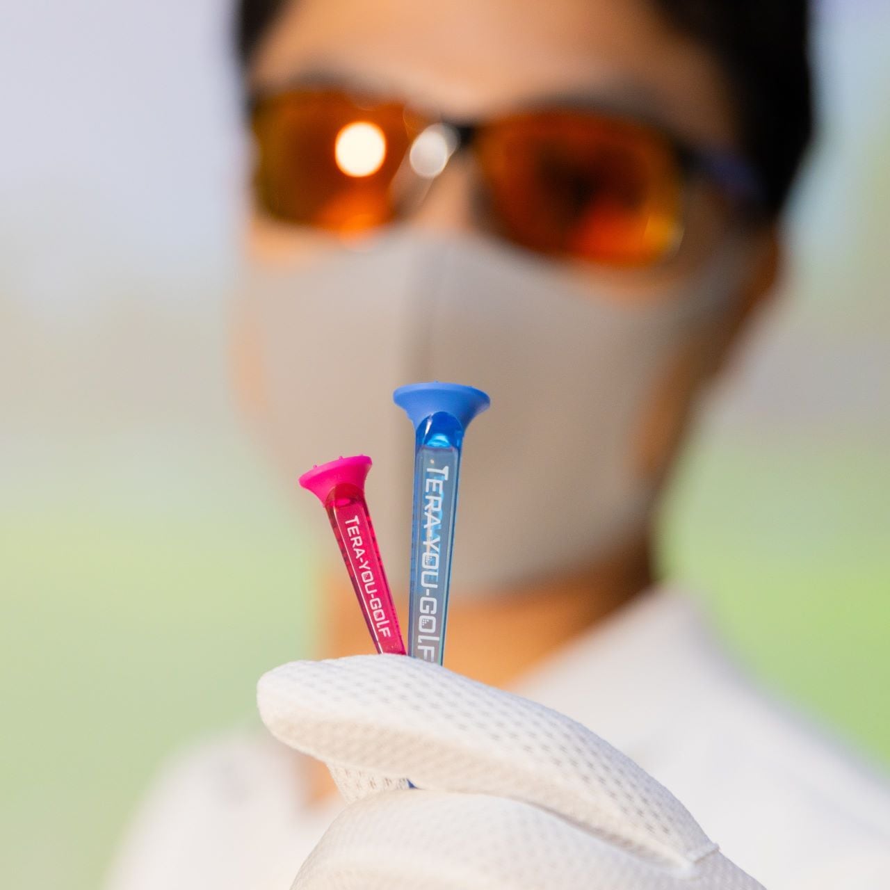 特許取得済みのデザイン。ツアーティーのティーヘッド部は特殊ラバー加工の摩擦軽減のための加工がされておりインパクト時の抵抗とスピンを軽減し飛距離の向上と安定をもたらしてくれます。